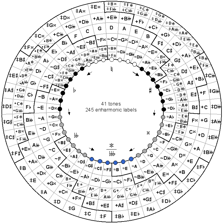 | Hunt System Preferred Names for Pitches of 41ET | ||||||||||||||||||||||||||||||||||||||||||