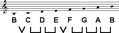 Shifting one more fifth to the right, from E to B, results in three tones differing from those of Dorian.