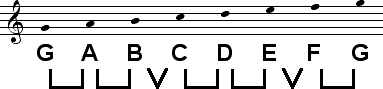 By shifting one more fifth to the right, from A to E, two tones differ from those of Dorian.