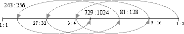 In Locrian, the Sixth 16:27 is replaced by 81:128, just as in Aeolian. The Second 8:9 is also replaced by 243:256, just as in Phrygian. Finally, Locrian is the only mode in which the Fifth 2:3 is replaced by a smaller Fifth 729:1024.