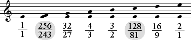 In the Aeolian mode the Sixth 16:27 is replaced by a smaller Sixth 81:128.