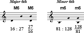 The Sixth 81:128 is smaller than the Sixth 16:27. Therefore, the Dorian Sixth 16:27 is called a Major Sixth while the Locrian Sixth 81:128 is called a Minor Sixth.
