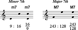The Seventh 9:16 is smaller than the Seventh 128:243. Therefore, the Dorian Seventh 9:16 is called a Minor Seventh while the Lydian Seventh 128:243 is called a Major Seventh.