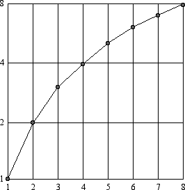 1.5 is supposed to be a midpoint between 1 and 2, but here it is shown slightly to the right of center, because this is the way we hear this value as a pitch. Recall that our musical measurements produce a curved line where we would normally expect a straight one.