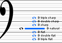 This pattern is given below for all accidentals of B on a bass clef, followed by notation of all accidentals of B.