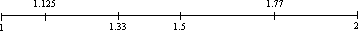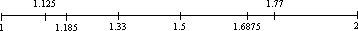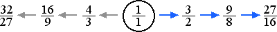 At this point, we may notice that the number line is getting fairly crowded. A small interval appears between 9/8 and 32/27, and also between 27/16 and 16/9.