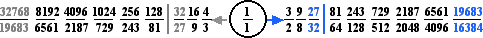 Once the 13 tone barrier is broken, the additional tones are related by Pythagorean (fifths) commas to the smaller subset. The ratios become quite large, and the notation reflects the comma relations with the awkward result that flat notes in higher positions specify lower pitches than adjacent sharp notes in lower positions, as shown below in the chain of 19 tones.