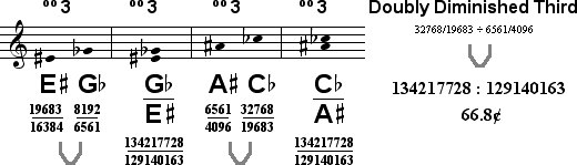 The placement of these doubly diminished thirds within the scale show that the 19 tone system has special significance, with these two new intervals recalling the two diatonic halfsteps of the diatonic naturals.