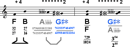 The interval sounds at nearly a perfect fifth, and this is of monumental significance. Consider that as the ends tones of the system this interval is systemically related to the augmented fourth F up to B from the diatonic naturals.