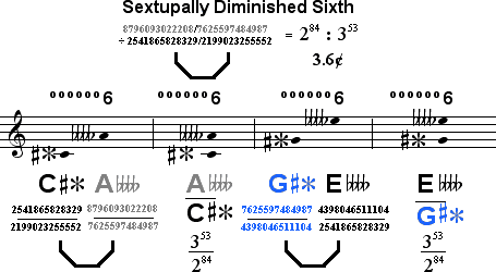 When we juxtapose these intervals, we find a very curious phenomenon. The minor seconds of the diatonic naturals literally converge into the near-unisons of the 55 tone system sextupally diminished sixths.