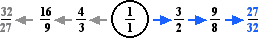 Next we consider the 43 tone system. Recall that this system has special significance because the end tones are altered versions of the source tone creating a sextupally diminished octave which sounds almost a perfect fourth. This system introduces triple accidentals, which have been discussed theoretically for centuries but have not been made standard so far.