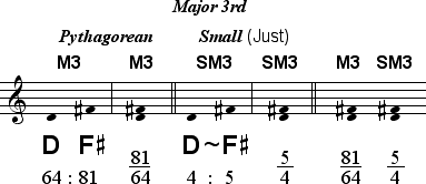 The new tone results in a new type of Major Third. What should this new interval be called? Just as the name of the new tone was taken from the Pythagorean tone 81/64, the Pythagorean interval 64:81 should also maintain the standard name Major Third, or M3. The slightly smaller comma shifted Major Third may thus be called the Small Major Third, or SM3. This smaller third can also be called the Just Major Third.