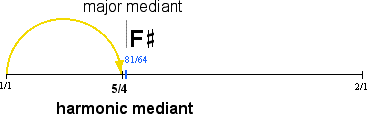 Because the new tone results from the fifth harmonic and falls near the Pythagorean major mediant, it is called the harmonic mediant.