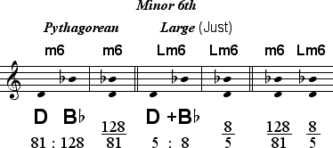 The new tone results in a new type of Minor Sixth. What should this new interval be called? Just as the name of the new tone was taken from the Pythagorean tone 128/81, the Pythagorean interval 81:128 should also maintain the standard name Minor Sixth, or m6. The slightly larger comma shifted Minor Sixth may thus be called the Large Minor Sixth, or Lm6. This larger sixth is also called the Just Minor Sixth.