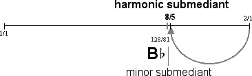 The tone 8/5 has an important place in the structure of the Western system. Just as the harmonic mediant 5/4 was produced above the tonic, the harmonic submediant 8/5 is produced below the tonic.