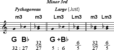 The tone 8/5, considered from this inversional orientation, is a third away from the upper tonic; however, the term Minor in Minor Triad refers to the quality of the interval above the lowest tone, which is the subdominant. This is a new Minor Third which is slightly larger than the Pythagorean m3, 27:32, so it may be called the Large Minor Third, or Lm3. This larger third is also called the Just Minor Third.