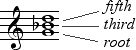 Contrary to the implications of the subharmonic series, the tones of the minor triad are named following the form of the major triad; the lowest tone is called the root, and the tones above the root are known as the third and fifth.