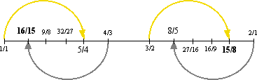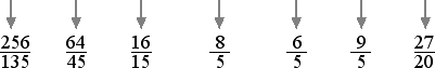 As things are getting a little crowded, we temporarily remove the tones derived so far, and we find the remaining tones which are shifted naturals, which fall very near those of the central chain. They are all shifted by a comma.