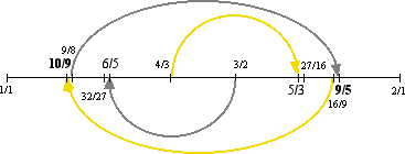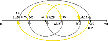 This same process is used on other pitches in the diatonic chain to continue filling in spaces between the central tones as we build the lattice.