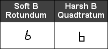 Eventually, two symbols were introduced to specify either the soft B or the harsh B, both resembling the letter b either with round or angular edges. The round b was called the rotundum and the angular b, quadratum.