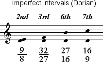 Comparing the imperfect intervals of the Dorian mode with those of the Lydian and Locrian modes shows two kinds of Seconds, Thirds, Sixths, and Sevenths.