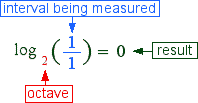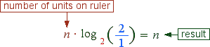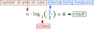While zero results for the measure of 1/1 regardless of the number of units on the ruler, the measure of the octave 2/1 is equal to the total number of desired units n.