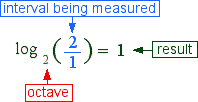 We now have a tone ruler with a single unit for measuring distances within an octave, properly expressed as an equation with the result on the right.