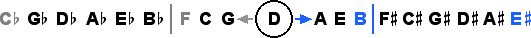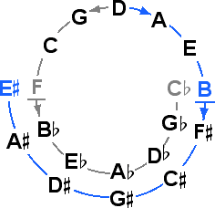 are related to the end tones of the diatonic naturals, B and F, by commas, as shown by the grey