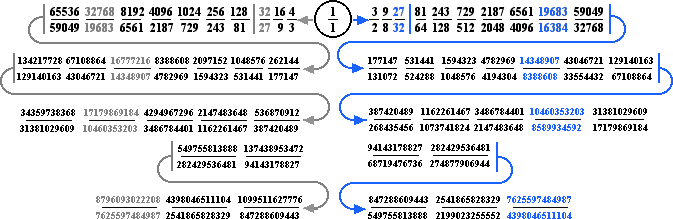 The 55 tone system has 43 Pythagorean commas, whereas the 43 tone system has 31 commas, the 31 tone syatem has 19 commas, and the 19 tone system has 7 commas. The numerical sequence is quite clear. But most importantly, this system reveals that a kind of progressive mutation has been occuring in all of these systems. In each next system, the ends of the system (related to F and B of the diatonic naturals) became closer and closer to sounding a perfect fifth, while the adjacent intervals (related to the halfsteps E to F and B to C of the diatonic naturals) became smaller and smaller, until with the 55 tone system, the ends sounds virtually a pure fifth, and the halfsteps have virtually vanished, sounding practically as unisons.