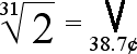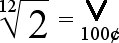 The above equation makes sense if one asks the question: what interval transposed up by its own distance twelve times is equal to an octave? Since transposition upwards in music is multiplication, to transpose an interval up by its own distance is to multiply an interval times itself; hence, we have some value times itself twelve times equalling 2. This would be shown by an exponent, and the inverse of this is the radical notation, shown above. On the right side of the equation is shown a shortcut from the actual linear value to the logarithmic units of cents.
